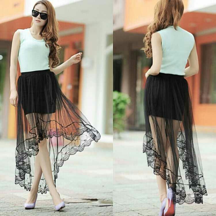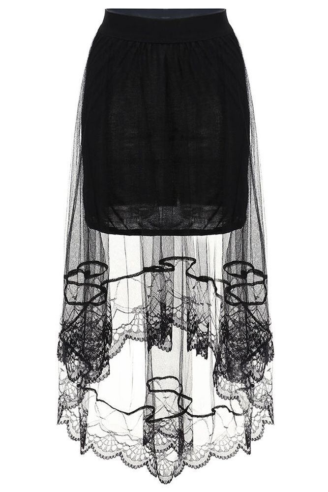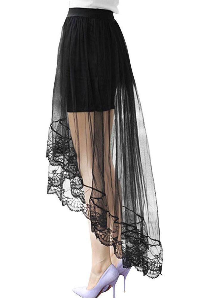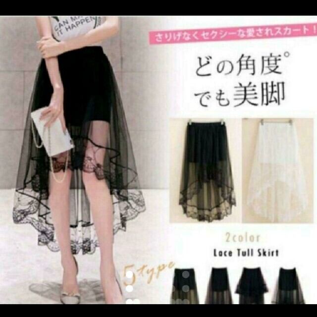 シ-スル-フィッシュテ-ルスカ-トです。セクシ-な透け感が女性らしい前と後ろの丈の長さがことなるエレガントなスカ-トです。ファスナ-なし(ゴム仕様)。裏地付。