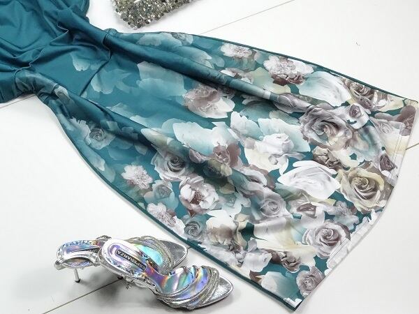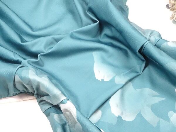 大きいサイズのラッフルスリ-ブワンピ-スです。フィット感が心地良く、裾後ろに15cmのスリットがあります。前は花柄プリント後ろは無地です。背中ファスナー有。裏地なし(透け感はありません)。