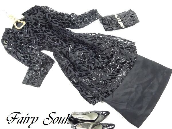 ツ-ピ-ス風ブラックワンピ-スです。黒一色の一枚物ですが上部がジャケット風になっていてしなやかな風合いと優しさ・柔らかさがとても素敵なドレスワンピ-スです。
