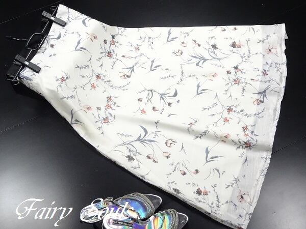 爽やかなマキシ丈フレア-スカ-トです。上品な花柄プリントでエレガントな一着です。裏地付。ファスナ-有。