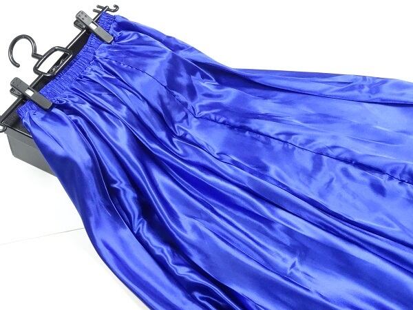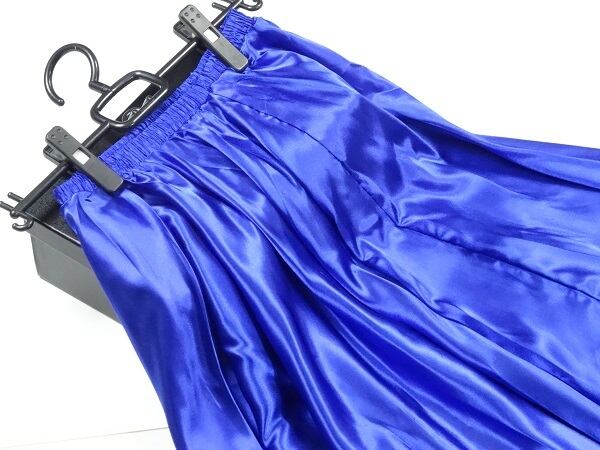 つるつるサテン光沢ブル-舞踏会用スカ-トです。揺れ感が素晴らしいです。ファーマルな席をはじめ社交ダンスやコ-ラスやコンサ-トにどうぞ。裏地なし。ファスナ-なし。