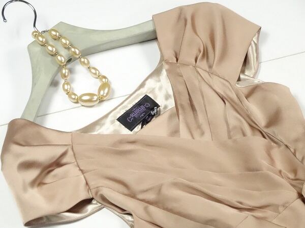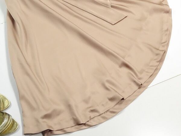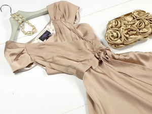 光沢フォ-マルワンピースです。光沢のあるゴ-ルドの生地で着心地の良い、上品な印象の一着です。左サイドファスナー有。裏地付。