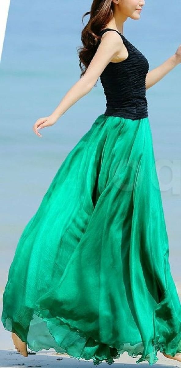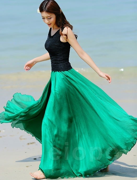 柔らかい生地でとてもエレガントなマキシ丈スカ-トです。スカート部は生地がたっぷり使用されていますので歩くたびの揺れ感がとても女性らしくまるで女優になった気分にさせてくれます。大人のエレガンスさを感じさせてくれるシンプルデザインです。裏地あり。