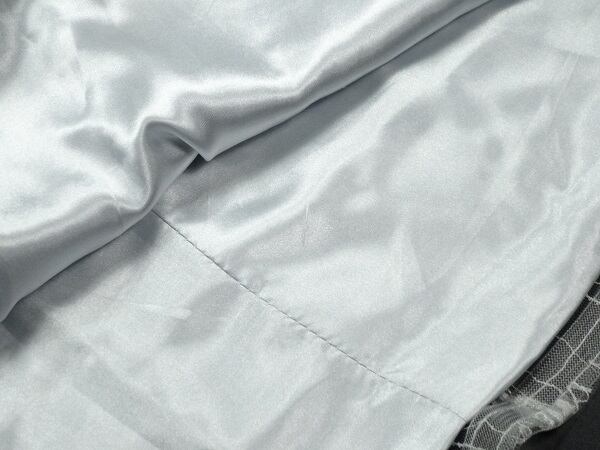 高級感ある光沢サテンドレスです。サテン生地の上にチュ-ルが重ねられ花刺繍がとても素敵です。生地がしっかりしていて皺になりにくく後ろはレ-スアップ仕様になっていてバストとウエストが調整できます。パーティやイベント、コンサート、結婚式にと、さまざまシーンで活躍してくれる美しい一着。背中結び紐有り。裏地付。