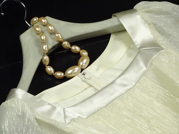 レ-ス仕様フォ-マルワンピ-スです。トレンド感たっぷり色の美しいエレガントなワンピ-スです。デザイン性のあるスタイルがとても魅力的な一着です。可愛いデザインで全体的に優しい感じに仕上げられています。背中ファスナ-有。裏地有。