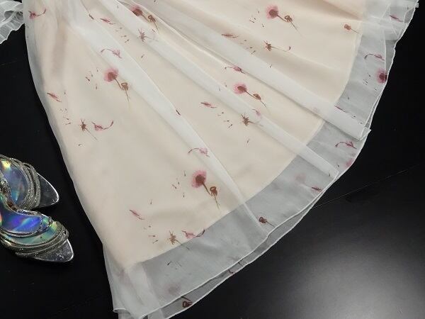 花柄オ-ガンジ-フレア-ワンピ-スです。大人の女性らしさが薫る美しいシルエットで、上品かつ優しい女性を表現してくれます。透明感ある素材使いが、とてもオシャレでしぐさを優雅に見せてくれる贅沢なお洋服です。裏地あり。右サイドファスナ-有。