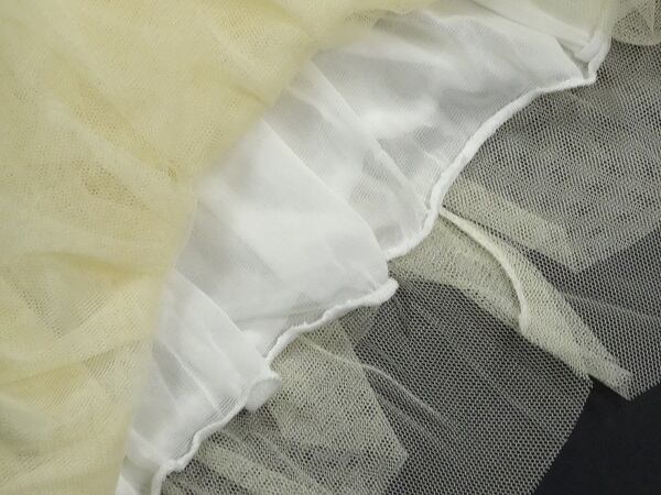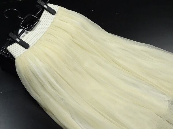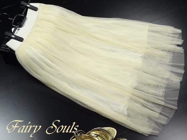 ふんわりチュ-ルのフレア-スカ-トです。シンプルなデザインで透け感が女性度UP!揺れ感がとても良いです。ファスナ-なし。裏地付。
