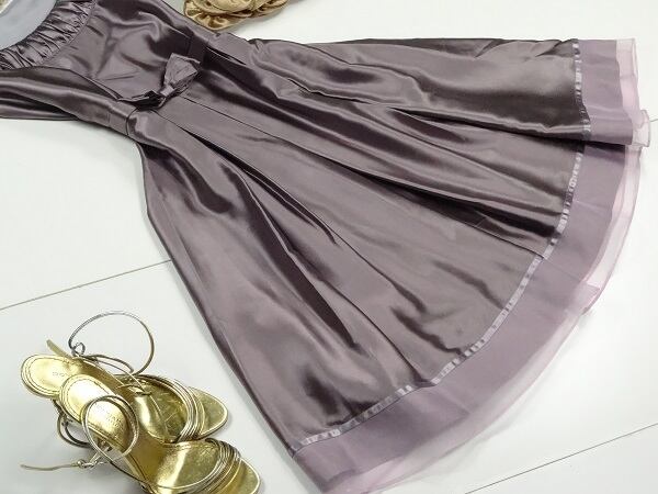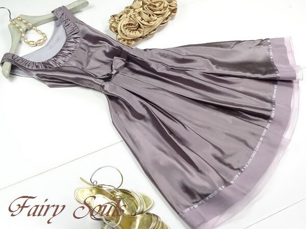 ノースリ-ブフレア-ワンピ-スです。シルクの肌触りがとても良く上品でいてつつましやかな華やかさを感じさせてくれるデザインは、お呼ばれ、デート、結婚式の二次会、コンサート等、どんなシーンでも活躍してくれる貴重な一着です。左サイドファスナー有。裏地有。