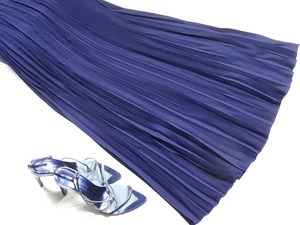 シフォンロングプリ-ツスカ-トです。動くたびに揺れるエレガントなプリ-ツスカ-トです。ファスナ-なし(ウエストゴム仕様)。裏地あり。