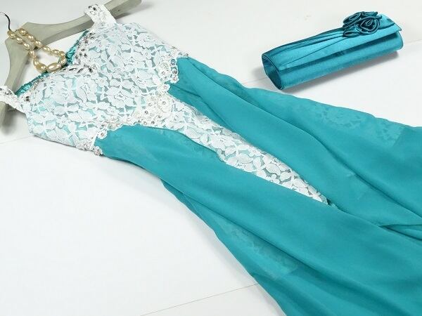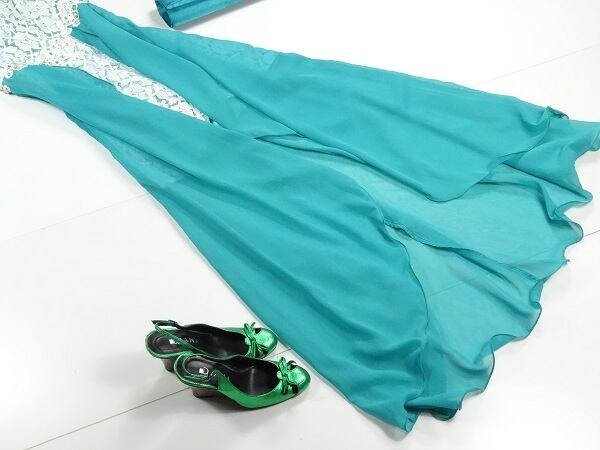 胸元のレ-ス刺繍が豪華で華やかな膝丈ワンピ-スとドッキングロングドレスです。ワンピ-スにオ-バ-スカ-トをあしらえたロングドレスになりなす!!動いた時にとても優雅です。パ-ティ-にいかがでしょうか。裏地有。背中ファスナ-有。