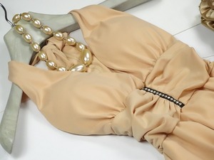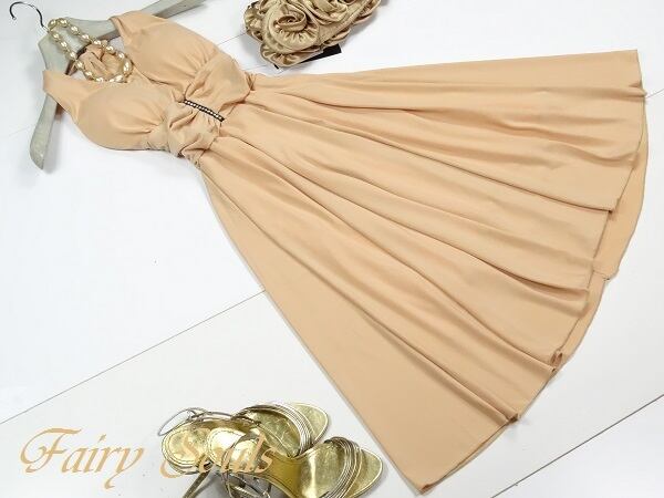 ホルダ-ネック膝丈フレア-ワンピ-スです。ウエストから裾にかけてフレア-な広がりが歩くたびになびき足の動きをキレイに見せてくれます。伸縮性あり。裏地付。ファスナ-なし。胸パット付。