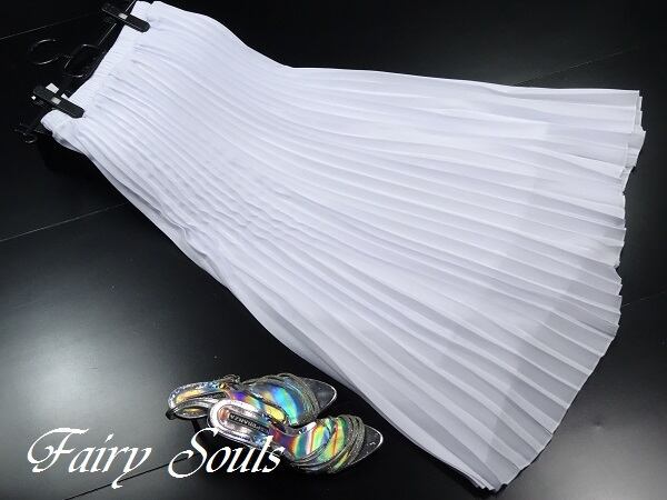 エレガントシフォンロングプリ-ツスカ-トです。動くたびに揺れるエレガントなスカ-トです。女子力UP間違いなしとおもいます。ファスナ-なし。裏地あり。