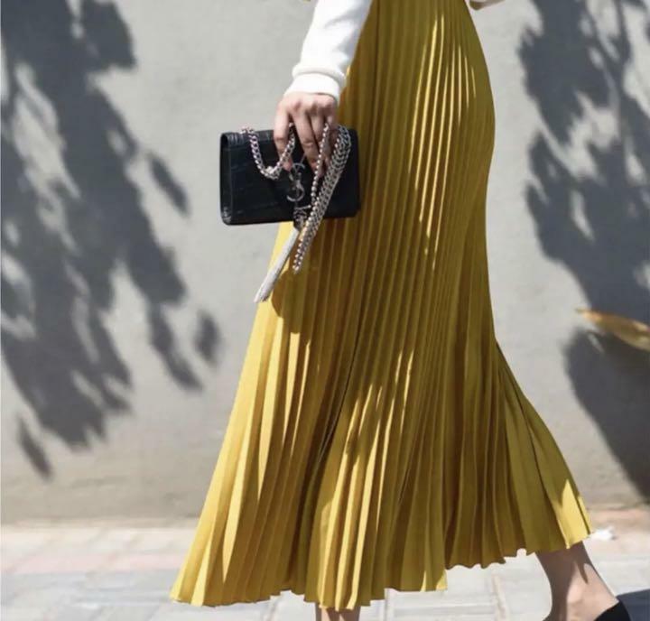 シフォンロングプリ-ツスカ-トです。動くたびに揺れるエレガントなプリ-ツスカ-トです。ファスナ-なし(ウエストゴム仕様)。裏地あり。
