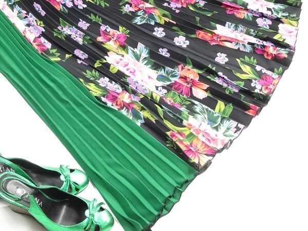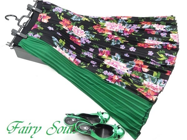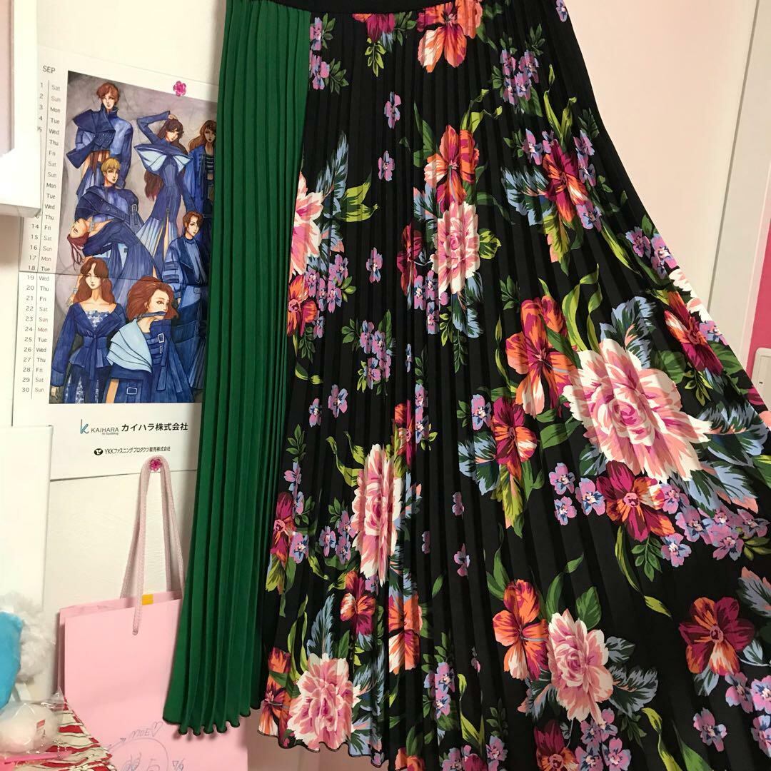 エレガント花柄シフォンロングプリ-ツスカ-トです。動くたびに揺れるエレガントなスカ-トです。女子力UP間違いなしとおもいます。ファスナ-なし。裏地あり。