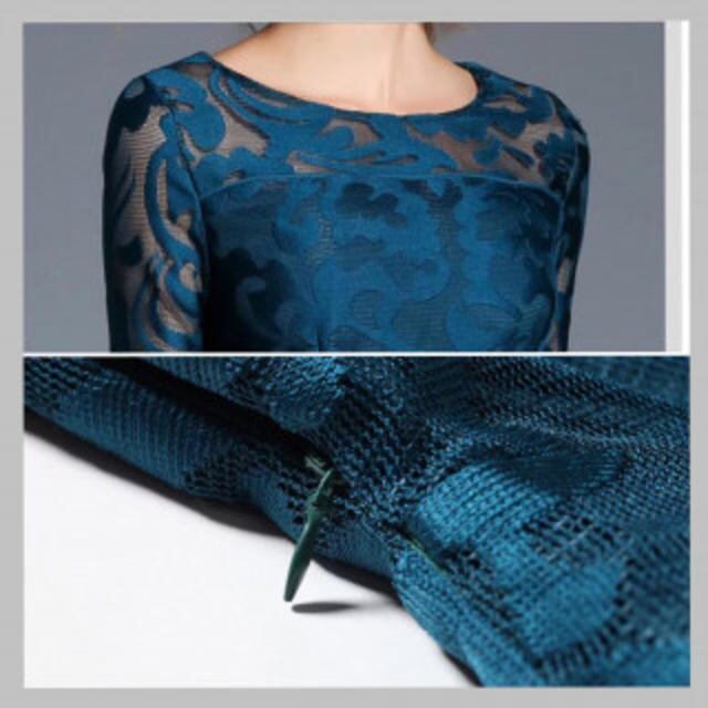 透け感が美しいレース仕様のワンピ-スです。ウエストで切り返しが入り、裾までボタニカル柄をあしらったレース仕立ての地をたっぷりと使用。ボリュームを出し華やかな印象に。袖は透け感があり、二の腕がほんのりと見え、品の良いセクシー感をかもしだしています。シックでやさしくエレガントな一着です。右脇ファスナーあり。裏地付き。