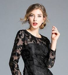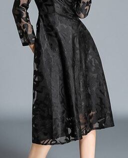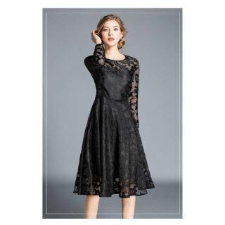 透け感が美しいレース仕様のワンピ-スです。ウエストで切り返しが入り、裾までボタニカル柄をあしらったレース仕立ての地をたっぷりと使用。ボリュームを出し華やかな印象に。袖は透け感があり、二の腕がほんのりと見え、品の良いセクシー感をかもしだしています。シックでやさしくエレガントな一着です。右脇ファスナーあり。裏地付き。