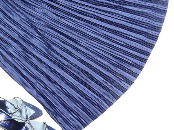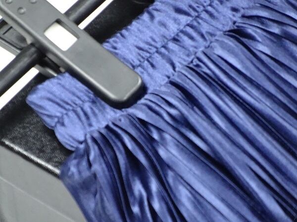 光沢ロングプリ-ツスカ-トです。つるつる滑る生地で動くたびに揺れるエレガントなプリ-ツスカ-トです。ファスナ-なし(ウエストゴム仕様)。裏地あり。
