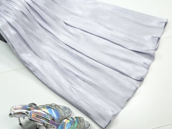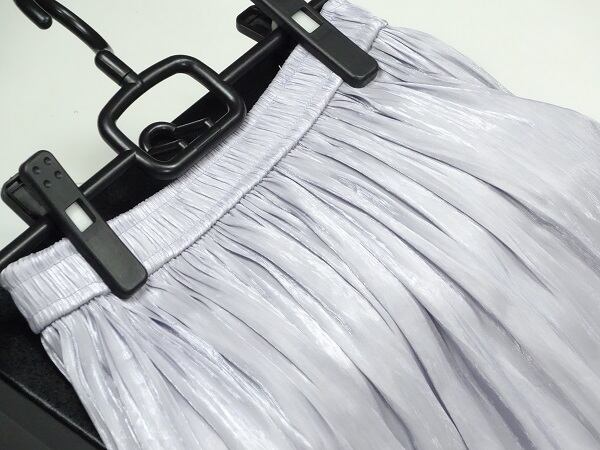 光沢シフォンソフトプリ-ツスカ-トです。動くたびに揺れるエレガントなスカ-トです。ファスナ-なし。裏地あり。