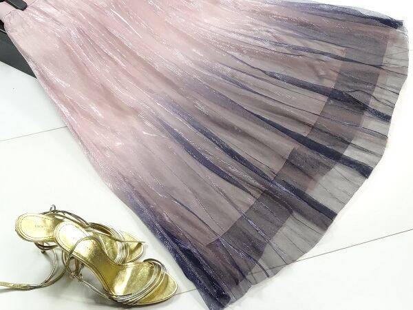 ピンクとブラウンのグラデーションシフォンプリ-ツロングスカ-トです。グラデーションがとても綺麗でシフォンが歩くたびにふんわりと揺れる魅力的なシルエット。リゾートコーデにも最適です!ウエストゴム仕様で伸縮性あり。裏地付。