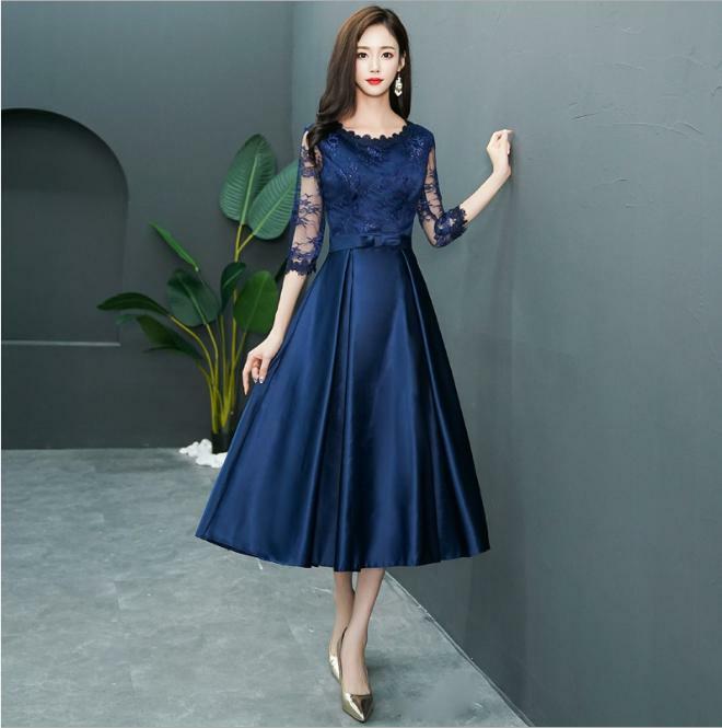 エレガントパ-ティ-ワンピ-スです。気品に満ちたとてもエレガントで上品なひとクラス上をいく一品です。トップス部分のレースの透け感もとても上品でエレガントです。裏地有。背中ファスナ-有。