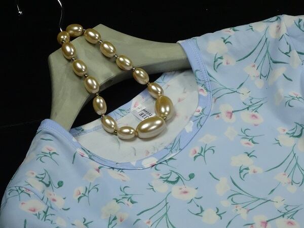花柄フレア-ワンピースです。上品で優しい女性を表現してくれます。 裏地なし。ファスナ-なし(かぶるタイプ)。同布ベルト付き。