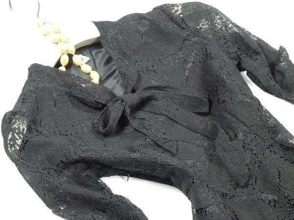 総レ-スミモレ丈ワンピ-スです。優良素材使用で長時間着用されても綺麗に着こなせます。全体の総レ-スがとても豪華又スリムに見えるデザインで大人の女性を醸し出してくれる一着です。裏地あり。右サイドファスナ-有。