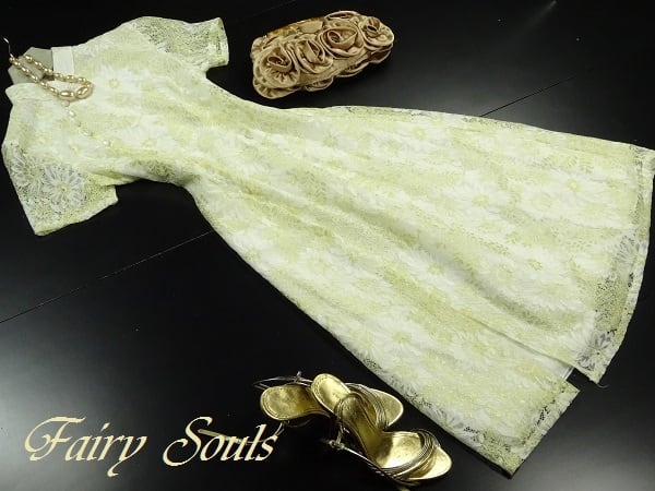 金糸刺繍チャイナ風前開きワンピ-スです。サテン地にレ-スが重ねられ白地にゴ-ルドの刺繍がとても豪華で綺麗な一着です。重ねられたレ-スのみ前開きになったデザインで大人の女性を醸し出してくれる一着です。裏地有。背中ファスナ-有。