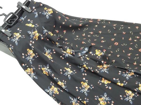 アンシンメトリーフリルのロングスカ-ト。さらっとした生地が着心地良く、ウエストから流れるようなフリルがエレガントで揺れ感も素敵です。大きな花柄と小さな花柄の生地が異なるのもユニークで素敵です。裏地有。後ろファスナ-有。