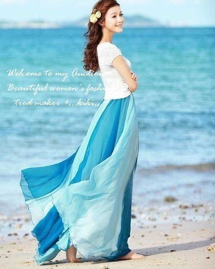 シンプルなシフォンのロングスカ-トです。歩く度にふんわりと揺れる裾が視線を集めます。!リゾ-トコ-デに最適!裏地付。画像2の色です。