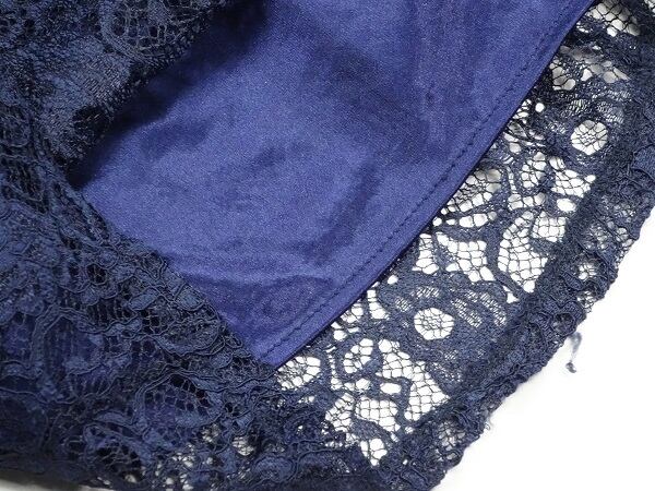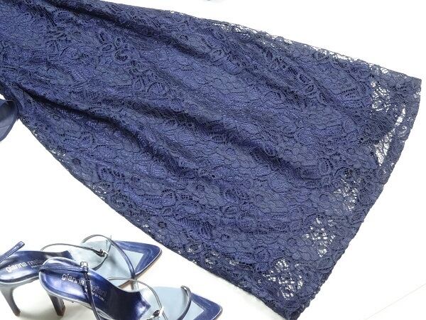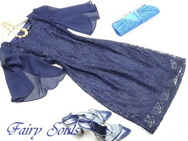 チュ-リップ袖ネイビ-の総レースワンピースです。フレアが綺麗なAラインのシルエット。紺の下地の上に、凝ったデザインの濃いネイビ-の総レースをかぶせたフェミニンなデザインになっていますシックで上品な女性を表現。パーティやイベント、コンサート、結婚式にと、さまざまシーンで活躍してくれる美しい一着。背中ファスナー。裏地付。