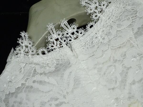 レースが美しい長袖のワンピースです。白のネット地の上に白のレースをあしらい、透明感のある美しいデザインです。ベーシックなアイテムだからこそコ-ディネ-ト次第でいろんな着こなしが楽しめます。デートやちょっとした御呼ばれなど、フォーマルなシーンにも活躍してくれる一着です。背中ファスナー。裏地有。後ろ裾10cmスリットになっています。