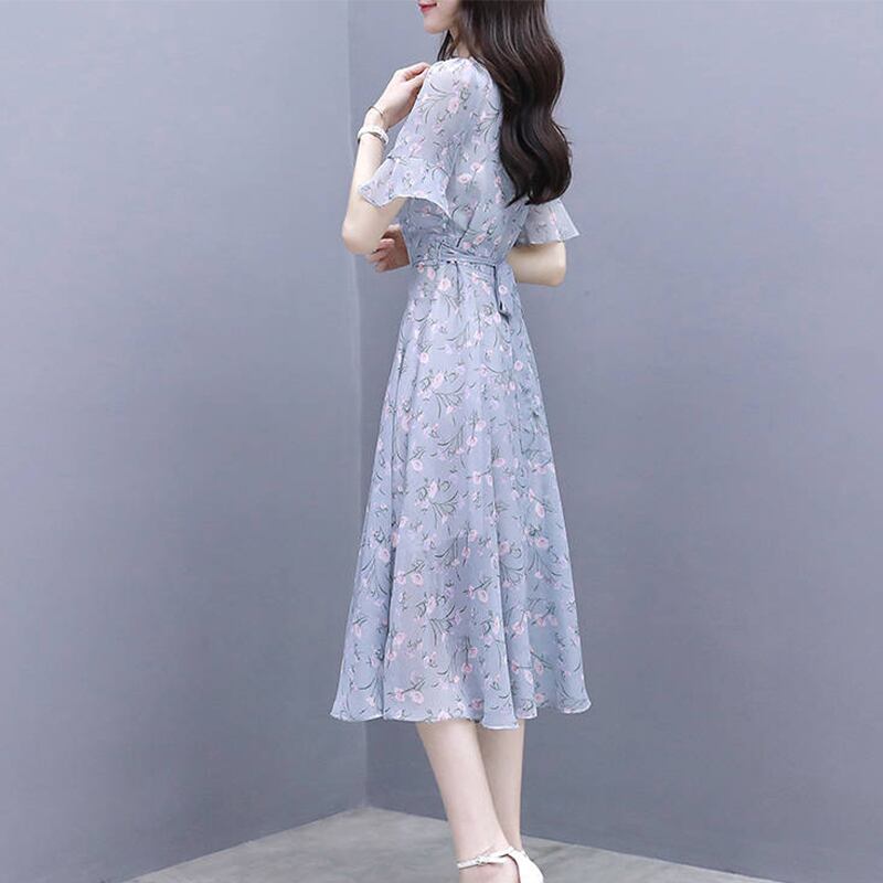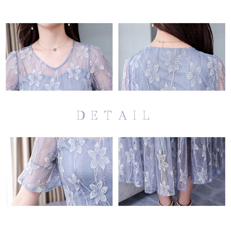 総レ-スフレア-マキシ丈ワンピ-スです。水色の下地にシルバ-のレ-スが全体に重ねられとてもエレガントなワンピ-スです。裏地あり。右サイドファスナ-有。