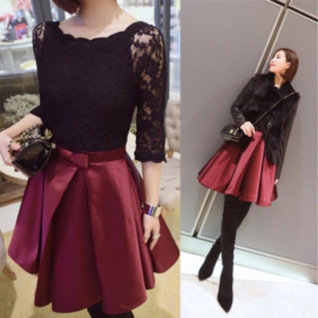 繊細なレースは薄手でとてもしなやか、光沢感もあり着心地抜群です。黒と深みのある艶やかなワイン色がマッチして、エレガントで品の良いデザイン。普段使いはもちろん、お呼ばれやデート、コンサートにと、幅広いシーンで活躍してくれます。右サイド背中ファスナー。裏地あり。