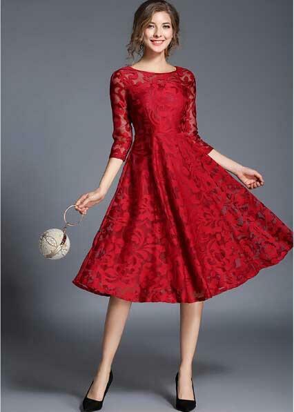 透け感が美しいレース仕様の7分袖ワンピ-スです。ウエストで切り返しが入り、裾までボタニカル柄をあしらったレース仕立ての地をたっぷりと使用。ボリュームを出し華やかな印象に。袖は透け感があり、二の腕がほんのりと見え、品の良いセクシー感をかもしだしています。シックでやさしくエレガントな一着です。右脇ファスナーあり。裏地付き。