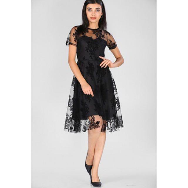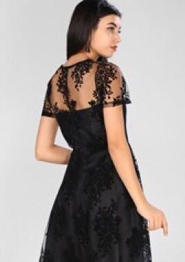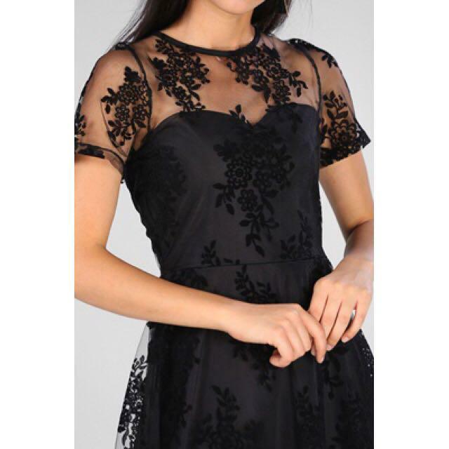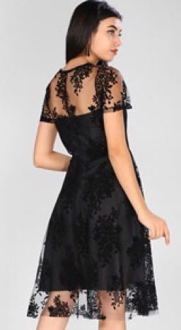 ネットチュールにレース刺繍が美しいワンピースです。黒のネット地に黒糸で刺繍がほどこされ、黒の下地が透けて見える美しいデザインです。デートやちょっとした御呼ばれなど、フォーマルなシーンにも活躍してくれる一着です。ファスナーなしのかぶるタイプ。裏地有。