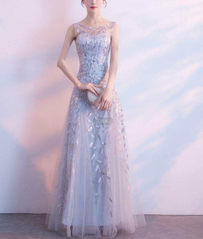 シルバ-のサテン地の上に光沢シルバ-の刺繍とビジュ-が施されたレ-スが重ねられたとてもお洒落で上品なフォーマルロングドレスです。腰から自然に広がるフレア-がとても綺麗で女性度UP間違いなしです。右サイドファスナ-有。胸パット付き。