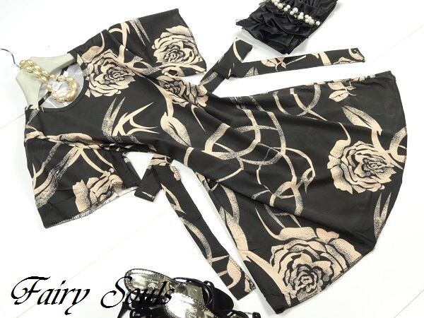 ■サイズ 11号位(L) バスト: 約98cm 着丈: 約84cm 袖丈:約20cm 肩幅:約38cm