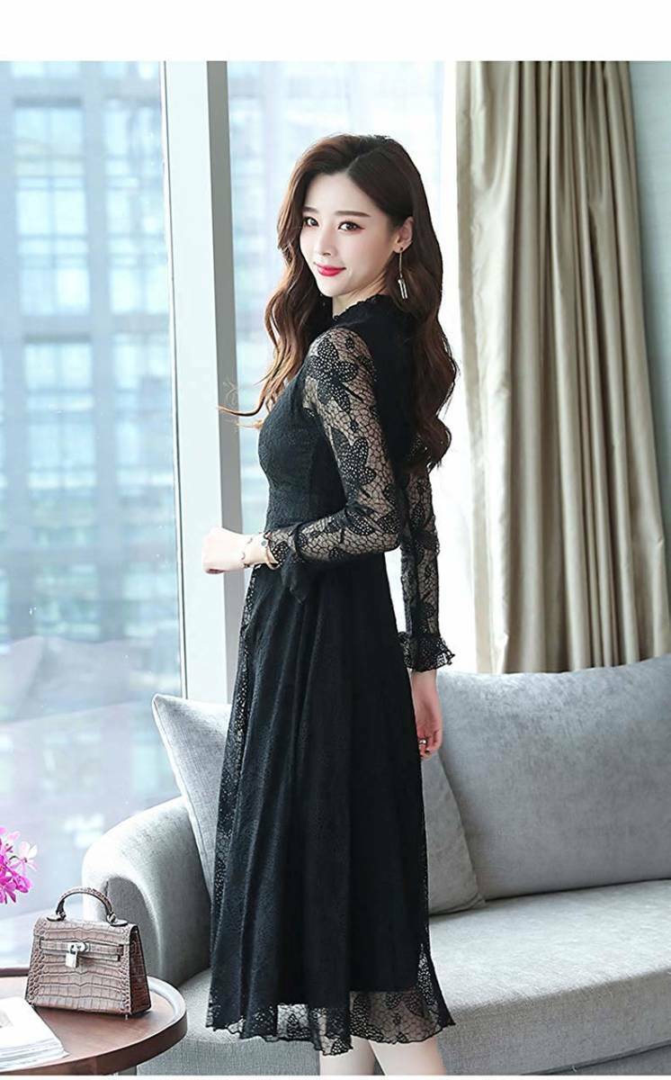 シースル-レ-ス地に花柄が施され上品かつ優美なマキシ丈ワンピ-スです。優良素材使用で長時間着用されても綺麗に着こなせます。全体の総レ-スがとても豪華又スリムに見えるデザインで大人の女性を醸し出してくれる一着です。裏地あり。背中ファスナ-有。