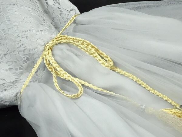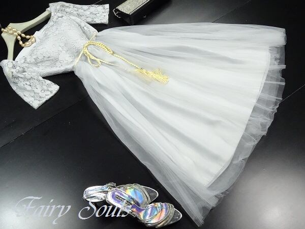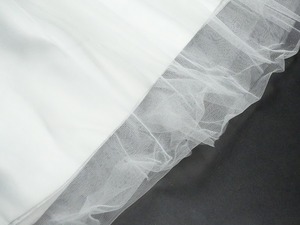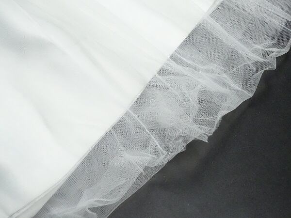 刺繍花柄レースチュ-ル膝丈ワンピ-スです。トップス部分はサテン地の上に花模様のレ-スが重ねられ、スカ-ト部分は柔らかいチュ-ルが重ねられたデザイン性のあるスタイルがとても魅力的な一着です。女性度UPのデザインで全体的に優しい感じに仕上げられています。背中結び紐有。背中腰下ファスナ-有。紐バルト付。胸パット付き。