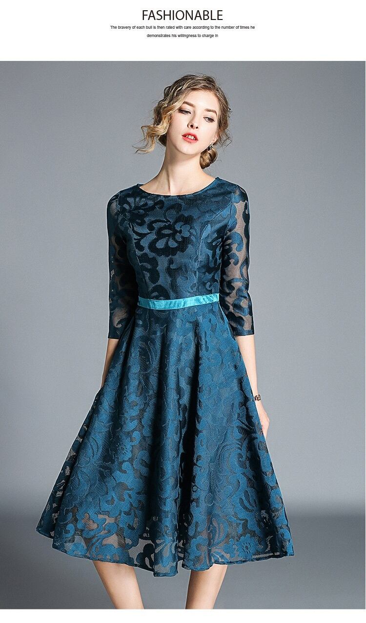 ネットチュールエレガントなミディ丈のワンピ-ス。大きな花柄をあしらった深い青緑のネットチュールがエレガントで上品な印象に仕上がっています。ウエストはサテンでアクセントに。ちょっとおしゃれな普段着としても、またフォーマルなシーンにも活躍してくれる、大人の女性を醸し出してくれる一着です。裏地あり。サイドファスナ-有。