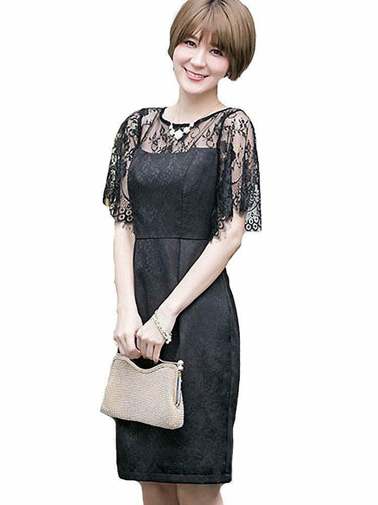 ネットチュールエレガントな膝丈のワンピ-ス。レース刺繍のようにも見える大小の花柄をあしらった黒のネットチュールがエレガントで上品な印象に仕上がっています。胸元と袖はチュールをそのままあしらい、ほんのり肌の透け感が美しく、胸元から裾までの本体は、しっかりとした生地の上にネットチュールを合わせ立体的に仕上げています。ちょっとおしゃれな普段着としても、またフォーマルなシーンにも活躍してくれる、大人の女性を醸し出してくれる一着です。裏地はありませんが、本体の生地がしっかりしているので透け感はありません。背中ファスナ-有。