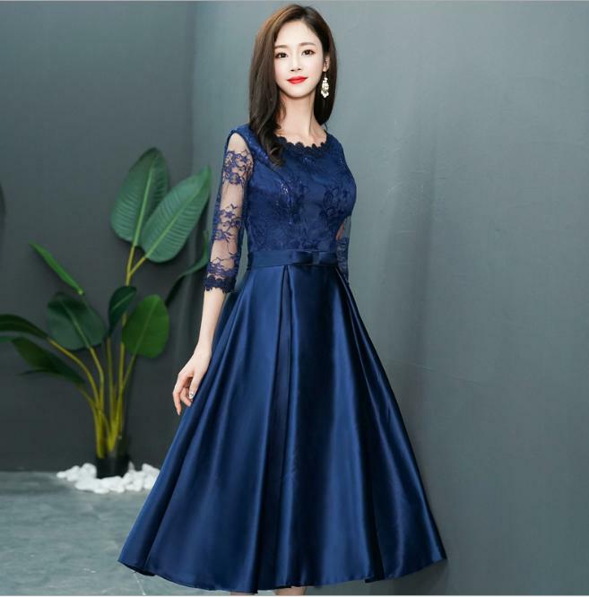 エレガントパ-ティ-ワンピ-スです。気品に満ちたとてもエレガントで上品なひとクラス上をいく一品です。トップス部分のレースの透け感もとても上品でエレガントです。裏地有。背中ファスナ-有。胸カップ付き。