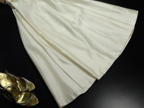 エレガントパ-ティ-ワンピ-スです。気品に満ちたとてもエレガントで上品なひとクラス上をいく一品です。トップス部分のレースの透け感もとても上品でエレガントです。裏地有。背中腰から下ファスナ-有。胸パット付き。
