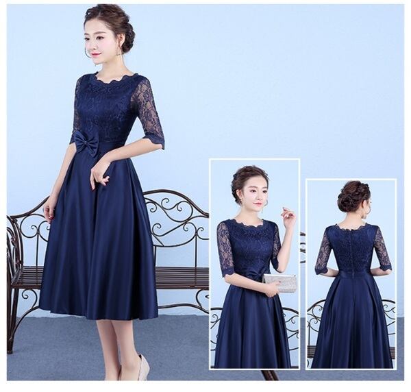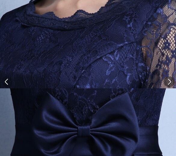 エレガントパ-ティ-ドレスです。ウエストの大きなリボンがとても可愛い気品に満ちたとてもエレガントで上品なひとクラス上をいく一品です。トップス部分のレースの透け感もとても上品でエレガントです。裏地有。背中ファスナ-有。胸パット付き。