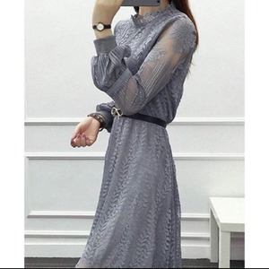 パフスリ-ブ総レ-ス膝丈ワンピ-スです。とてもエレガントで透かし彫りの総レ-ス生地がフェミニンで大人の女性を醸し出してくれる一着です。裏地あり。背中ファスナ-有。ベルト付き。