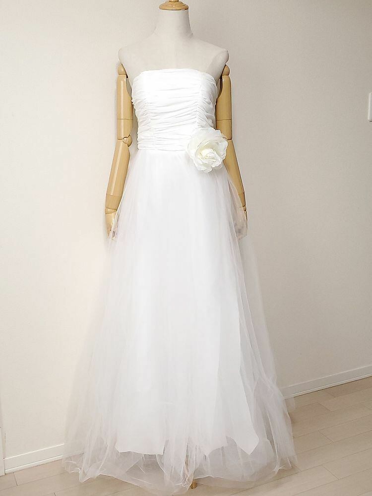 チュール重ねロングドレスです。胸元はギャザ-になっていて裾にかけては白のサテン地の上に白のチュールが3重に重ねられた豪華なデザインで清楚な女性を表現してくれています。背中は編み上げタイプでバストとウエストを調整することが出来ます。パーティやイベント、コンサート、結婚式にと、さまざまシーンで活躍してくれる美しい一着。背中結び紐有。背中腰から下ファスナー有。コサ-ジュ付き。胸パット有。