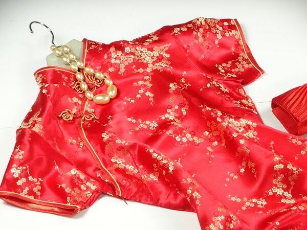 金糸刺繍ロングチャイナドレスです。レッド地にゴ-ルドの刺繍がとても豪華で綺麗な一着です。スリムな大人の女性を醸し出してくれる一着です。裏地なし。右サイドファスナ-有。両サイド58cmのスリット有。