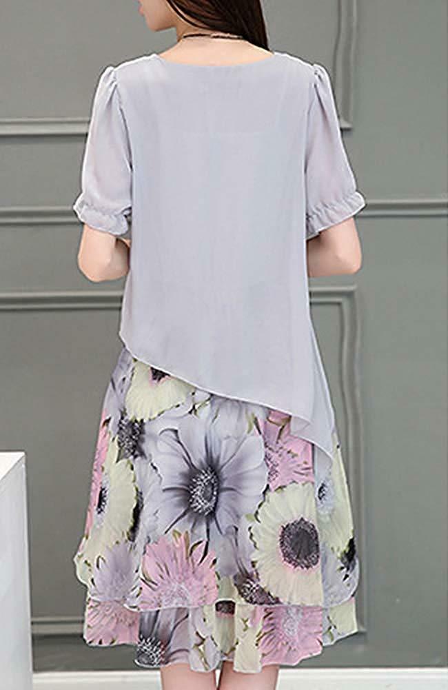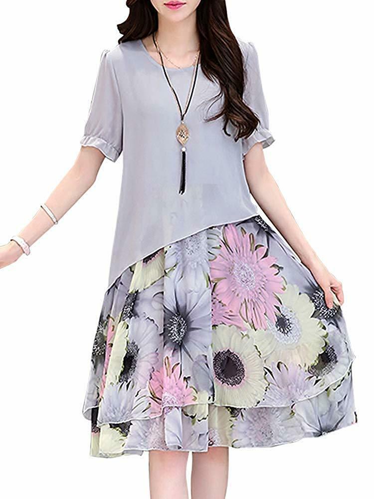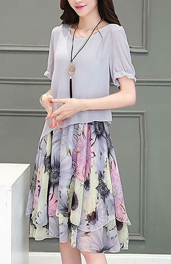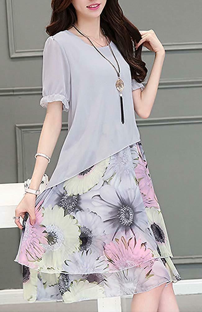 爽やかな柔らかさが優しい女性の印象を伝えて、人気のソフトな着心地の重ね着風ウエスト切替ワンピ-スです。ウエストはゴム仕様で水墨画のような色合いと柔らかシフォンで仕上げられたフレア-スカ-トが優雅さを演出してくれます。ファスナ-なし(かぶるタイプ)。裏地有。