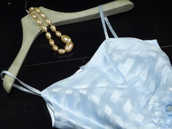 パーティ-フォーマルフレア-ドレスです。裾に広がるフレア-がとてもキュート。豪華でフェミニンなデザインになっています。パーティやイベント、コンサート、結婚式にと、さまざまシーンで活躍してくれる美しい一着。背中ファスナー有。裏地付。