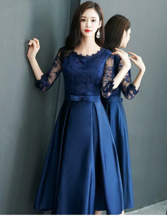 エレガントパ-ティ-ワンピ-スです。気品に満ちたとてもエレガントで上品なひとクラス上をいく一品です。トップス部分のレースの透け感もとても上品でエレガントです。裏地有。背中ファスナ-有。胸カップ付き。